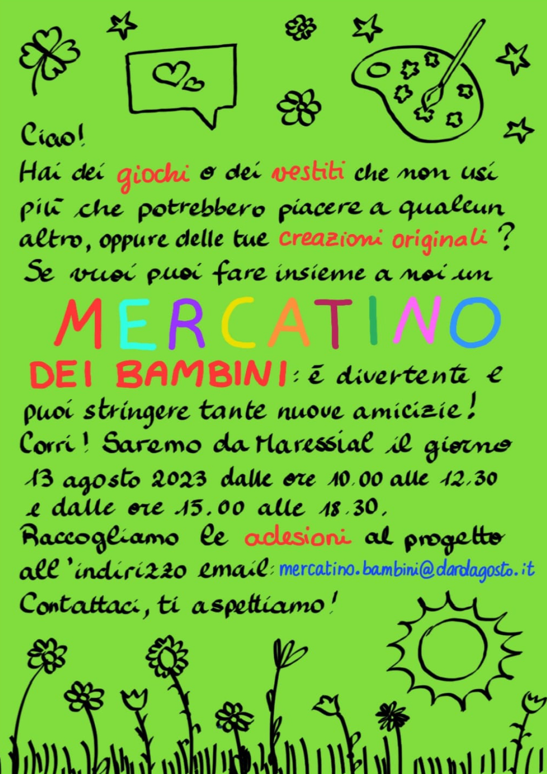 Per informazioni: mercatino.bambini@dardagosto.it