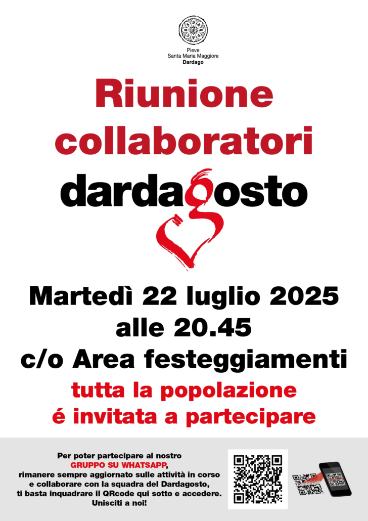 Se desideri far parte del nostro principale GRUPPO DEI COLLABORATORI DEL DARDAGOSTO SU WHATSAPP, per essere informato sulle attività in corso e collaborare con la squadra organizzativa, tutto ciò che devi fare è INQUADRARE IL QR CODE.