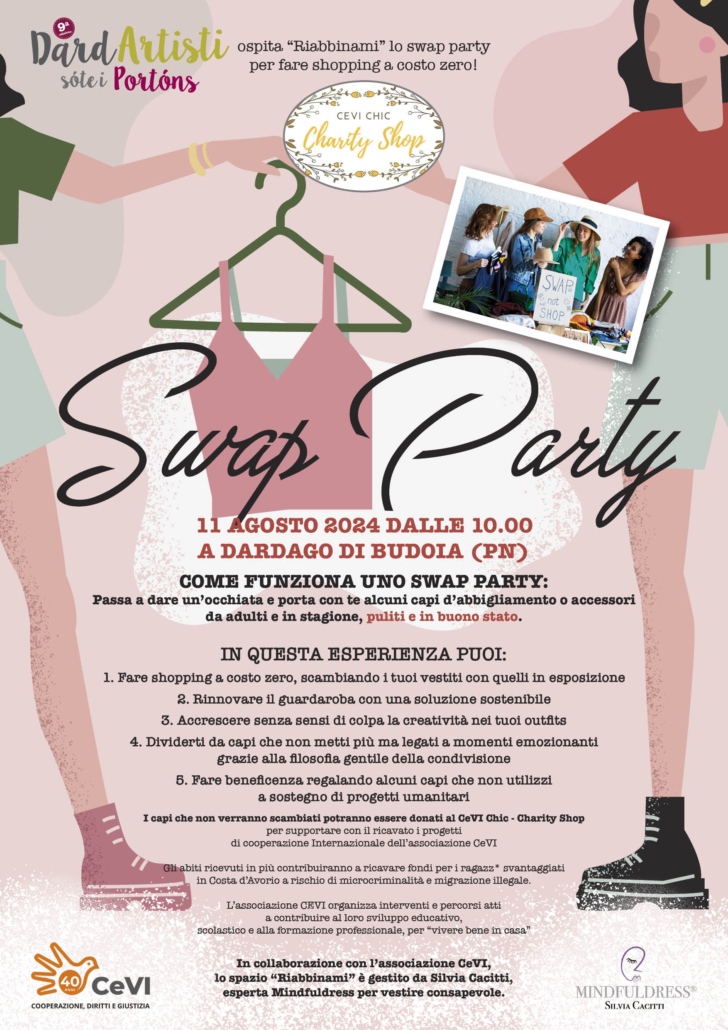I capi che non verranno scambiati potranno essere donati al CeVI Chic – Charity Shop per supportare con il ricavato i progetti di Cooperazione Internazionale dell’associazione CeVI.