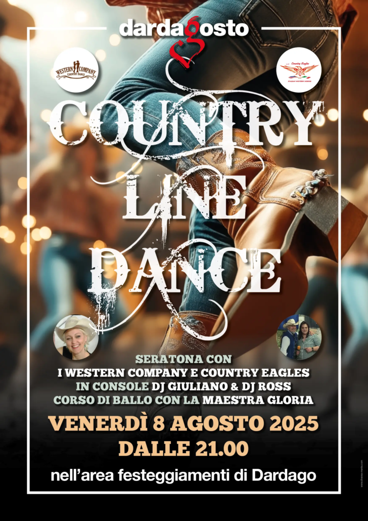 L’8 agosto 2025 vi aspetta una serata indimenticabile alla Sagra del Dardagosto: è tempo di COUNTRY LINE DANCE!